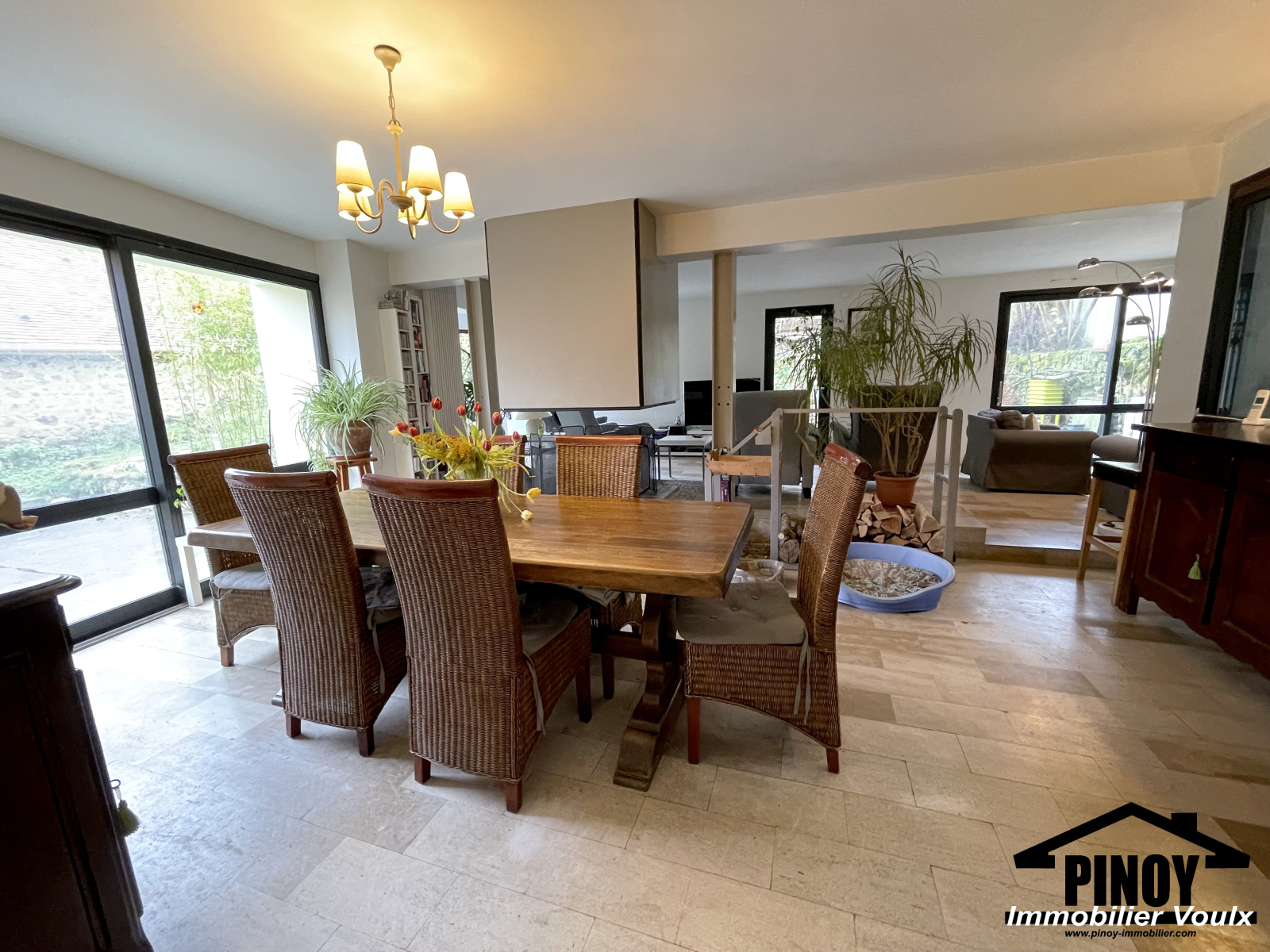 Maison ancienne réaménagée par un architecte dans les années 80. Des transformations importantes ont été réalisées, de nouveaux murs ont été érigés sur sa périphérie pour donner toute liberté pour la création de nouveaux volumes. Résolument moderne, cet ensemble vous séduira pour son aménagement fonctionnel et son originalité. Hall d'entrée, cuisine aménagée avec ilot central, triple séjour lumineux dans lequel plusieurs espaces sont crées, la cheminée centrale ouverte sépare l'espace salle à manger et salon, pation intérieure, bureau, chaufferie. On accède à l'étage par un escalier hélicoidal en béton : Un palier dessert alors 4 chambres dont une suite parentale, salle de bains. Au 2ème étage : Laissé tel quel, les combles de 100m² environ peuvent tout à fait se prêter à la création d'un atelier d'artiste ou à une chambre parentale luxueuse, selon ses besoins et ses envies. Cette maison atypique attend une nouvelle famille, nichée au coeur d'un village, à 18 Min de Montereau, 20 Min de Nemours et de Sens, vous disposez de toutes les commodités sur place. Pour la découvrir, contactez-nous : 01.64.70.71.65, Agence Pinoy immobilier 33 Grande rue - 77940 Voulx.