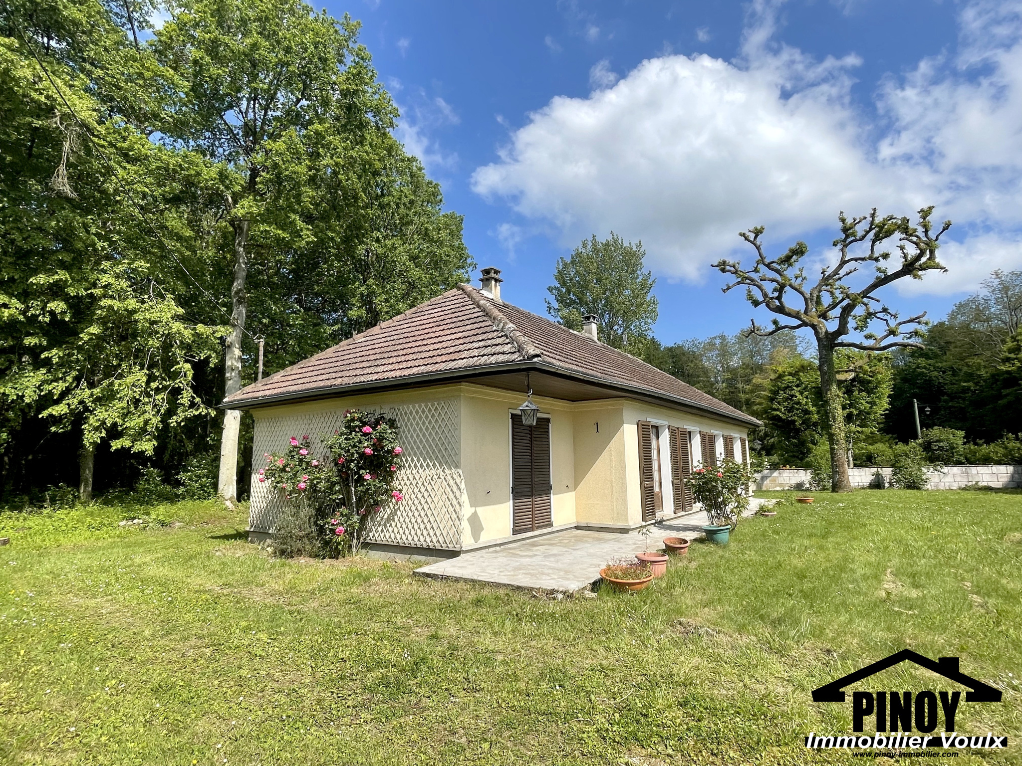 Maison de plain pied sur 3.160m² de jardin. Cuisine, séjour, salle de bains, 3 chambres, garage attenant. 2 abris de jardin. Installation électrique neuve (facture de 7000€). Une maison pour se rapprocher de la nature, à proximité de #VOULX, #Lorrez le bocage, #Montereau, #Fontainebleau, #Nemours. L'agence Pinoy immobilier, 33 Grande rue - 77940 VOULX, 01.64.70.71.65 vous accompagne à chaque étape de votre projet immobilier.